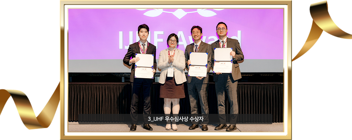 저는 지난 9월 21일부터 23일까지 열렸던 Heart Failure Seoul 2023에서 COVID-19 mRNA 백신 유발 심근염 환자 생검 조직의 단백질체 분석을 통한 생물학적 경로 분석 (Proteomic discovery of molecular pathways in patients with biopsy-proven COVID-19 mRNA vaccine induced myocarditis)에 대한 내용을 발표하였으며 매우 영광스럽게도 젊은 연구자상을 받게 되었습니다.