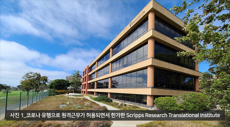 안녕하세요. 저는 김재중 선생님을 비롯한 여러 선생님들의 배려 덕분에 2021년 7월부터 2023년 7월까지 2년 동안 미국 샌디에이고에 있는 Scripps Research Translational Institute (사진 1)에서 Cardiomyopathy Genomics 연구를 하였습니다.