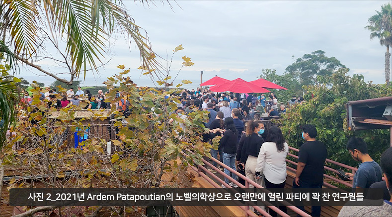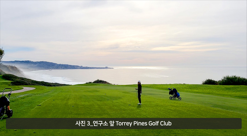 Scripps Research는 2017년에는 MIT나 Rockefeller University를 제치고 최고의 영향력이 있는 연구소로 선정될 만큼 유명한 연구소입니다. 제가 있는 동안에도 2021년 Ardem Patapoutian가 노벨 생리학-의학상(사진 2)을 받았고 2022년에는 Barry Sharpless가 노벨 화학상을 받았습니다. 특히 Barry Sharpless는 노벨 화학상을 두 번이나 받는 놀라운 업적을 남겼습니다. Scripps Research Translational Institute는 t-PA, clopidogrel 등의 개발에 중요한 역할을 하였고, 현재는 Precision medicine과 Digital medicine이라는 키워드로 유명한 Eric Topol에 의해 2007년에 설립되어 국내에는 US open과 같은 유명한 메이저 골프 대회가 열리는 Torrey Pines Golf Club 옆에 붙어 있는 것으로 유명합니다 (사진 3). 본받아야 할 좋은 제도라고 생각했던 것은 Faculty 들이 정년 보장을 받고 나서도 1년에 한 번씩은 연구 내용과 진행사항을 공개적으로 발표를 하는데 이때 저명한 외부 위원들이 참석하여 수준 높은 토론과 조언을 해 준다는 점입니다.
