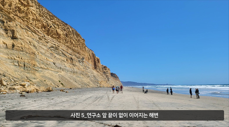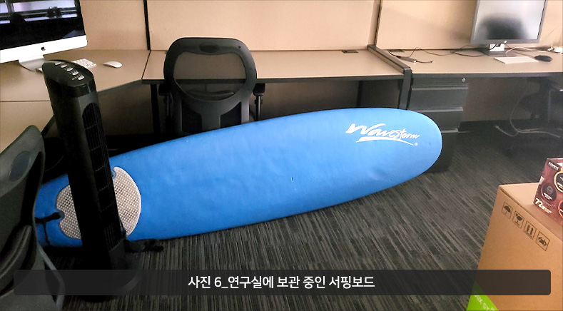 샌디에이고는 날씨가 좋아 사계절 집 앞에서 수영을 할 수 있고 (사진 4), 넓은 해변(사진 5)에서 여러 가지 액티비티를 할 수 있으면서도 안전해서 미국에서도 살기 좋은 곳으로 손꼽히는 지역입니다. 연수를 가기 전에 전해 들려오는 소문으로는 해변이 가까워 연구원들이 캐비닛에 서핑 보드를 보관하다가 퇴근하면 서핑을 타러 간다고 들어 정말 그런지 궁금했습니다. 그런데 가서 보니 서핑보드가 너무 커서 캐비닛에는 들어가지 않아 연구실에 보관하다가 종종 타러 가기는 하였습니다 (사진 6). 잘 알려지지 않은 샌디에이고의 명물은 수제 맥주로 샌디에이고에 약 200군데 이상의 Brewery가 있습니다. 샌디이에고를 방문하실 기회가 있으면 Brewery를 꼭 들러서 수제 맥주를 즐기시는 것을 잊지 마십시오.