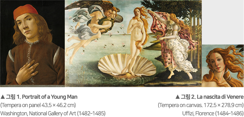 ‘비너스의 탄생’으로 잘 알려진 이탈리아의 화가 Sandro Botticelli (1445-1510)가 그린 “Portrait of a young man”의 젊은 남자는 빨간 두건형의 모자를 쓰고, 고개를 오른쪽으로 기울이고 뭔가 생각에 빠진 듯 한 눈빛이다 [그림1].