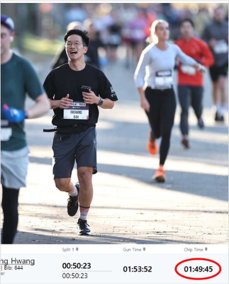 직전 대회보다 약간 기록을 단축할 수 있었습니다.